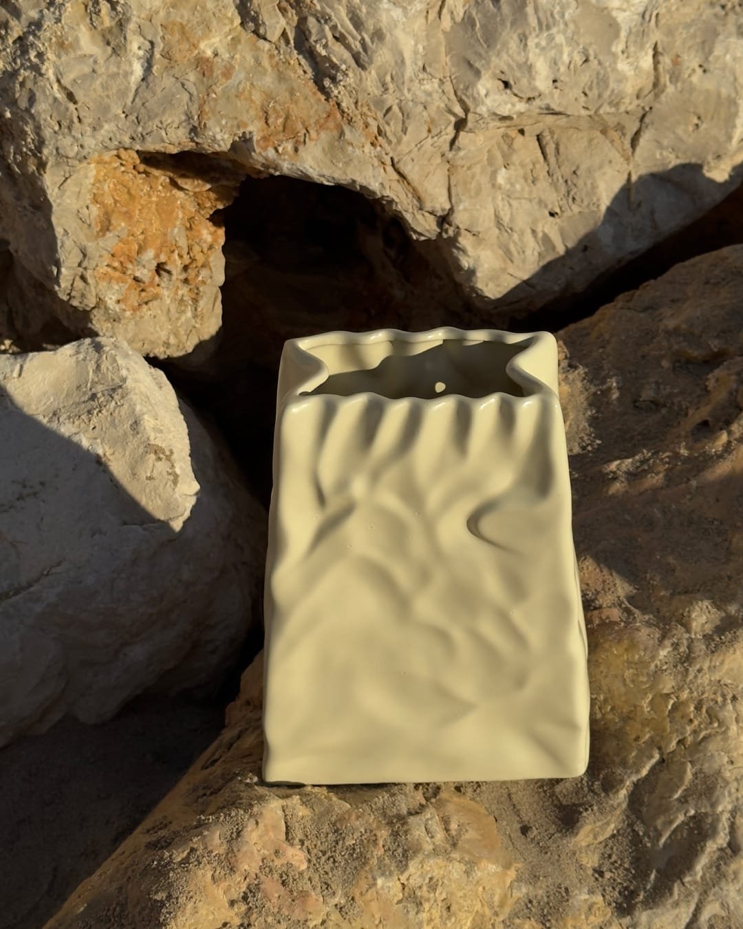 Introducing the Sculpted Butter Vase, a uniquely designed ceramic piece crafted in Portugal. Inspired by the organic elegance of sculpted forms, this vase features a soft, buttery hue and textured folds that evoke a sense of natural beauty and artisanal craftsmanship.