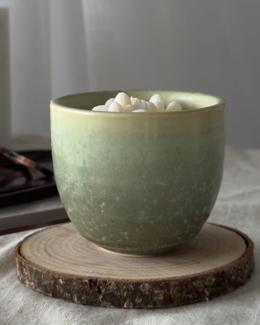 ✔ 1 Handmade Soy Wax Candle in ceramic cup– Crafted with 100% natural soy wax for a clean and toxin-free burn. Each candle is unique and designed to add warmth and elegance to your space.