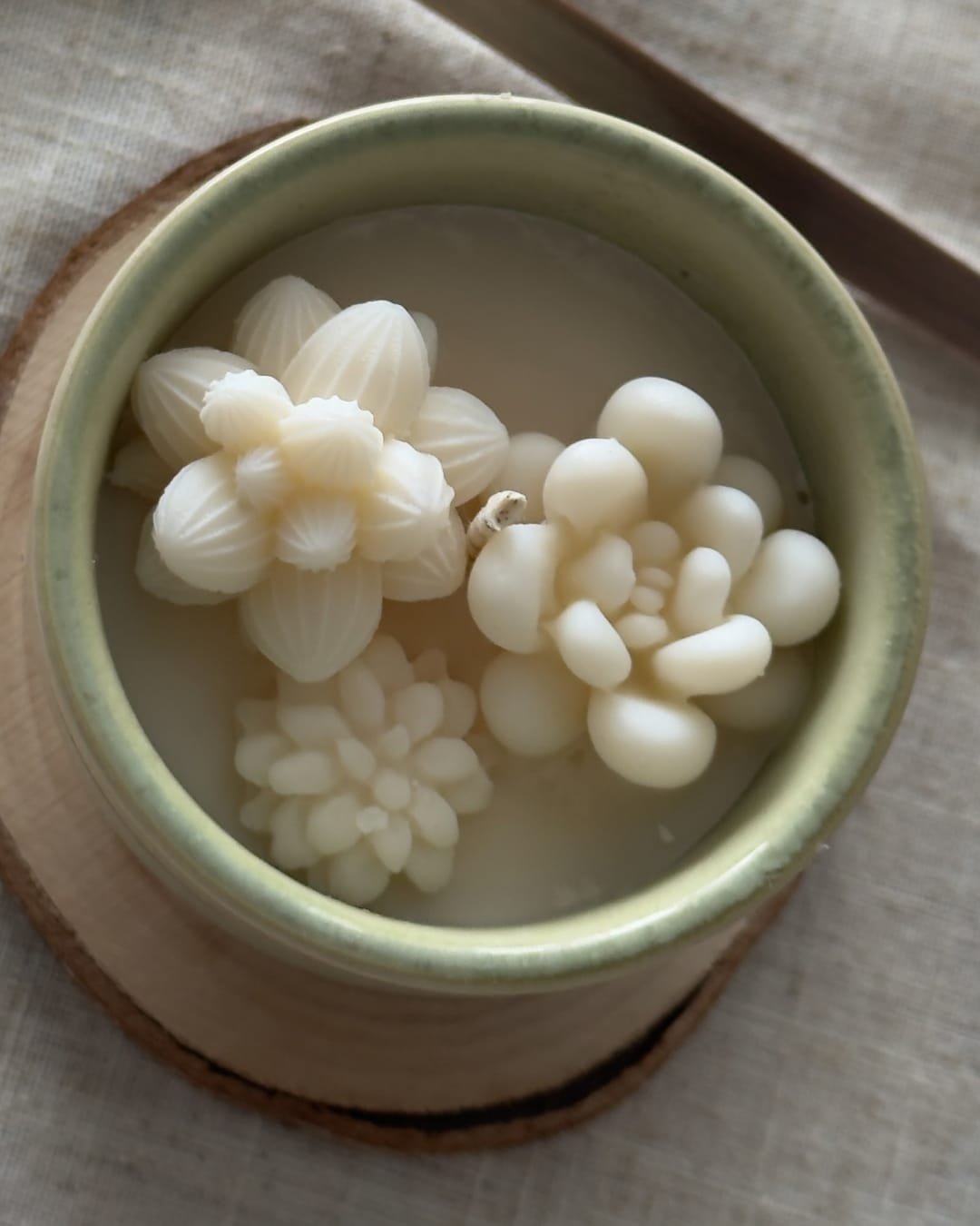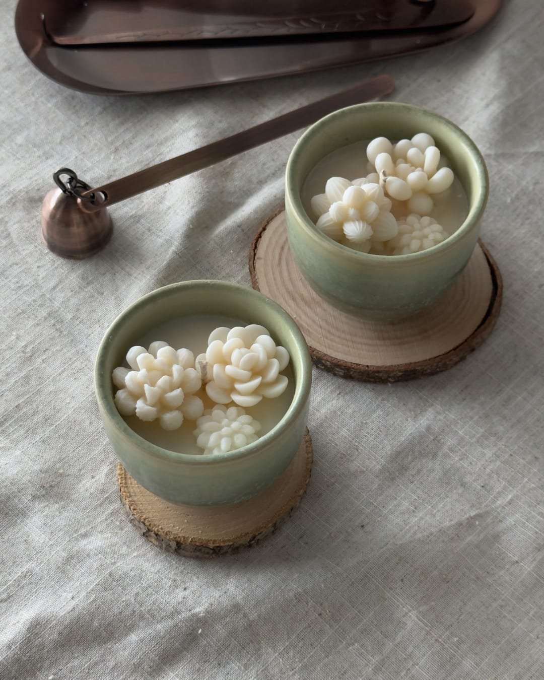The Succulent Verde Candle is a 271g handcrafted soy wax candle, inspired by the natural beauty of succulents. Housed in a 7×6 cm ceramic cup with a rich green glaze, it brings a sense of tranquility and freshness to any space.
